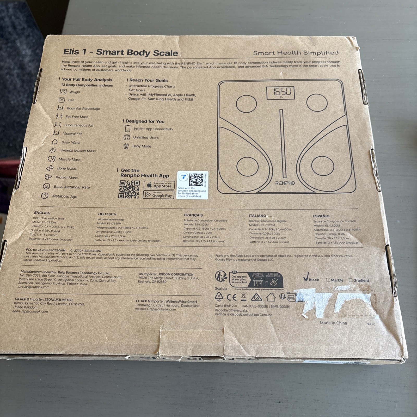 как выглядит Renpho Elis 1 - Bluetooth Smart Body Fat Scale - Black фото