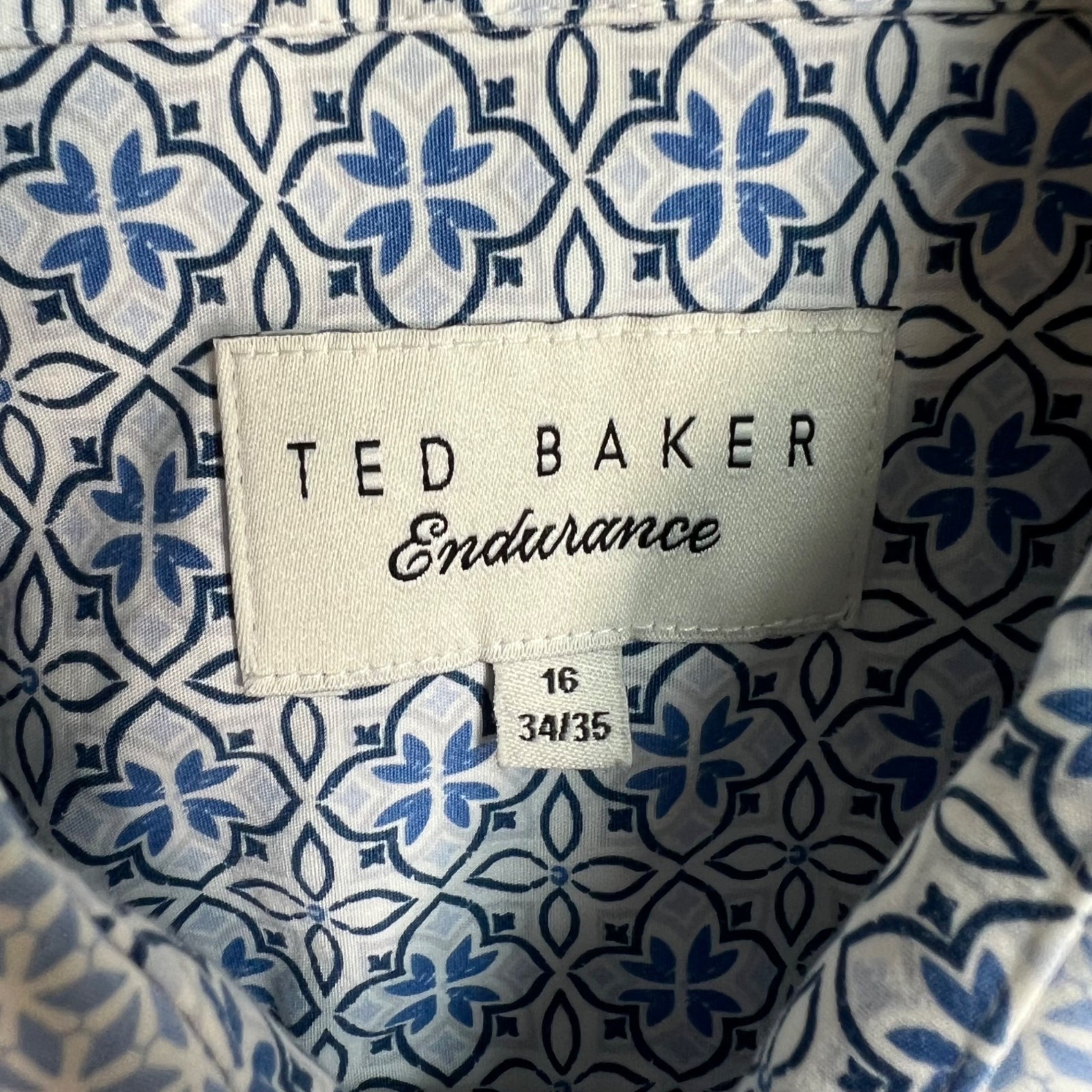 Ted Baker Endurance Mens Blue Geometric Pattern Dress Shirt Size 16 34 / 35