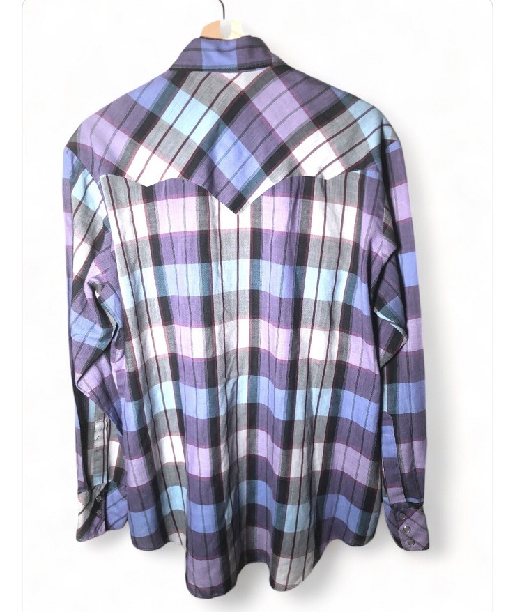 как выглядит Vtg 70s Miller Western Pearl Snap Shirt Cowboy Style 16/35 L Plaid фото