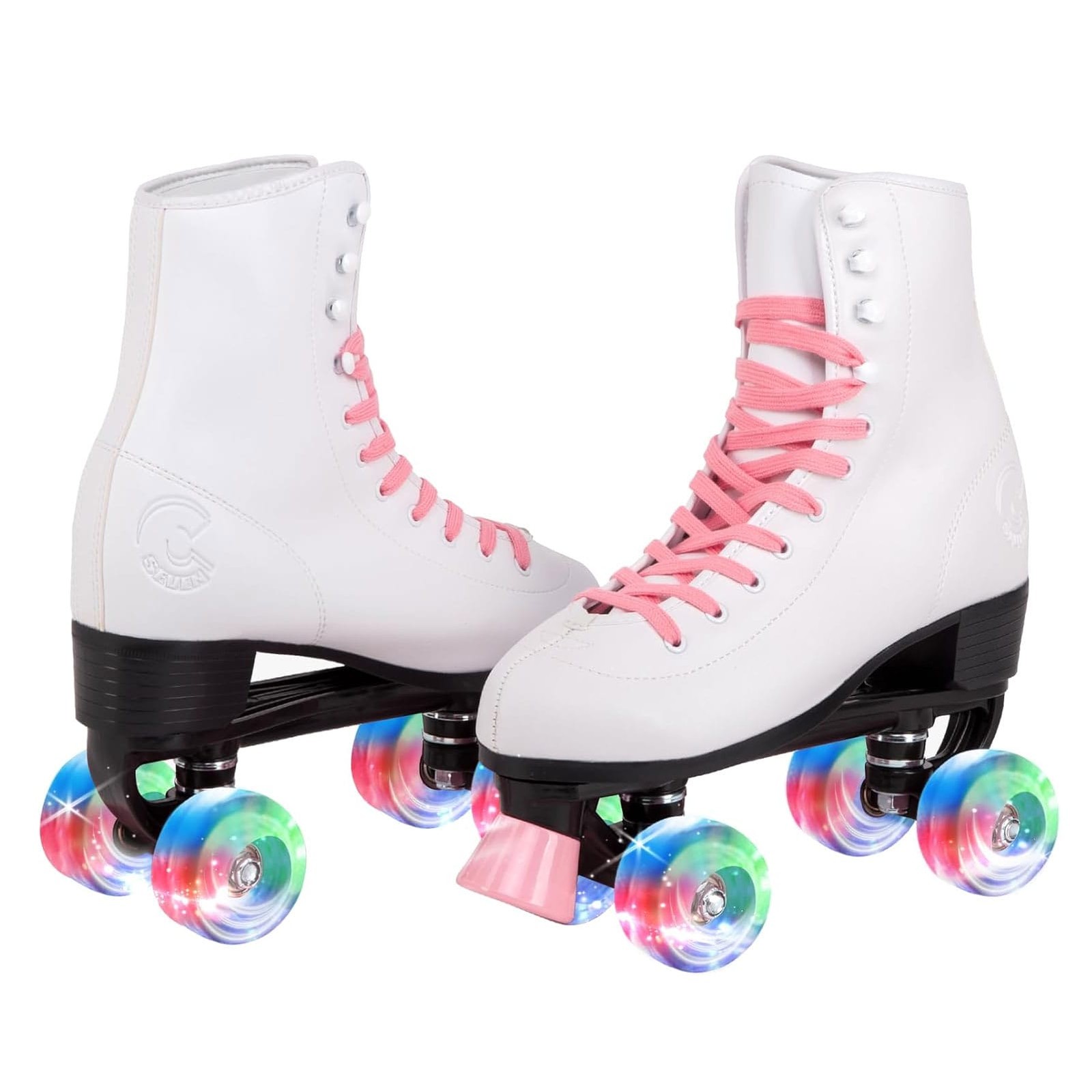 C SEVEN Youth Retro Design Candy Pink LED Quad Roller Skates C7-RSB-CP-LED