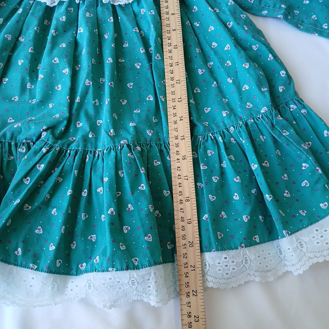 как выглядит Fayette Vintage Child Girl Dress Green Floral Hearts Lace Bib Size 5 80s фото