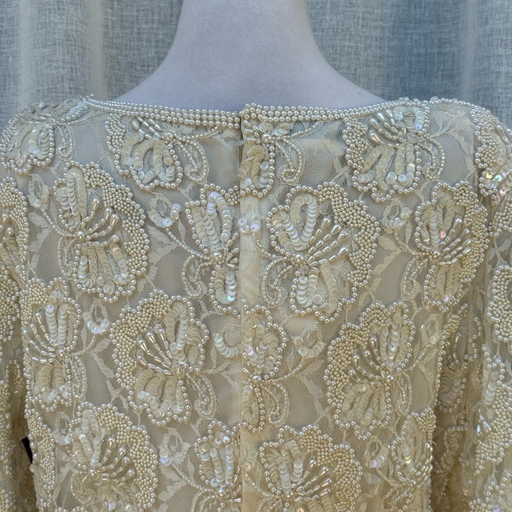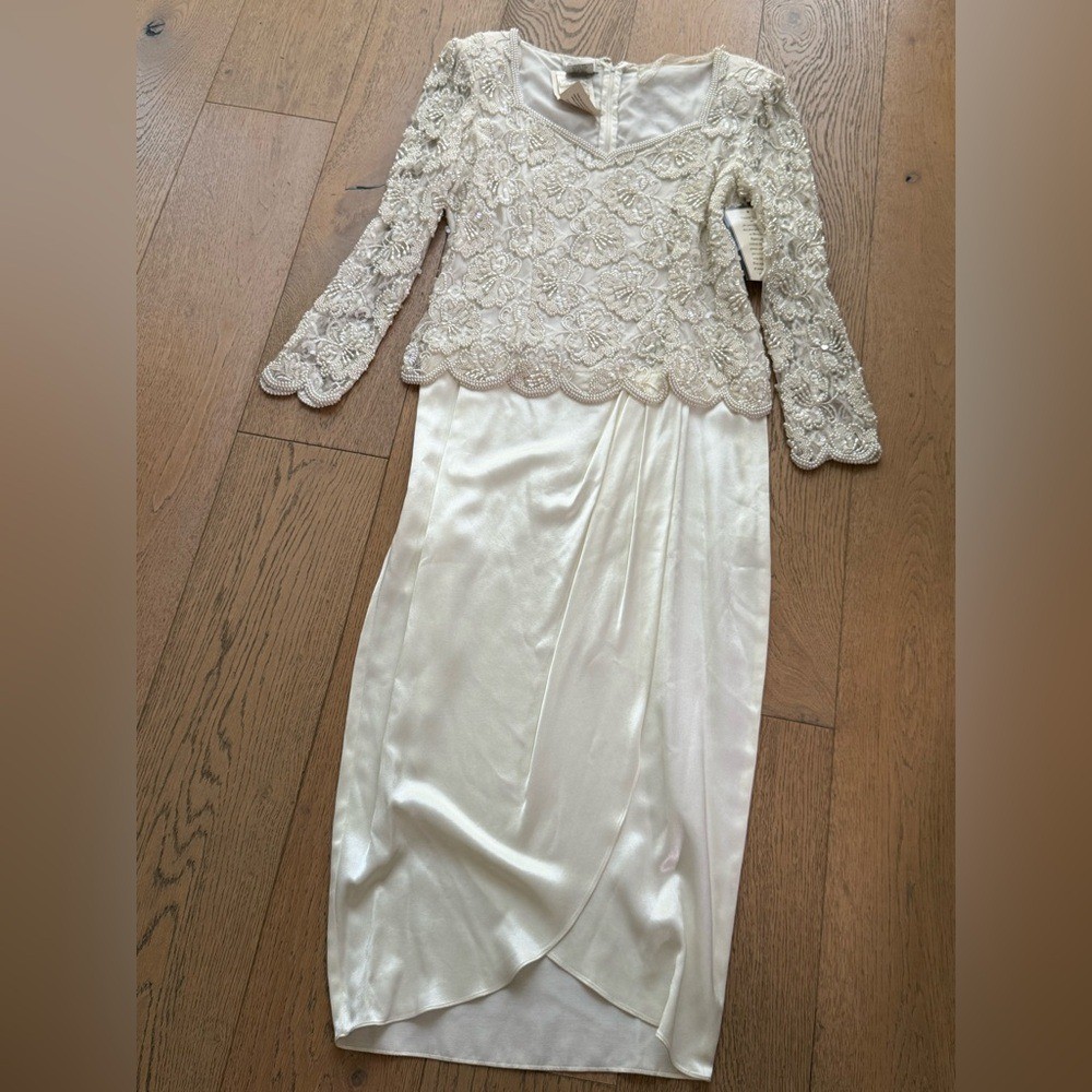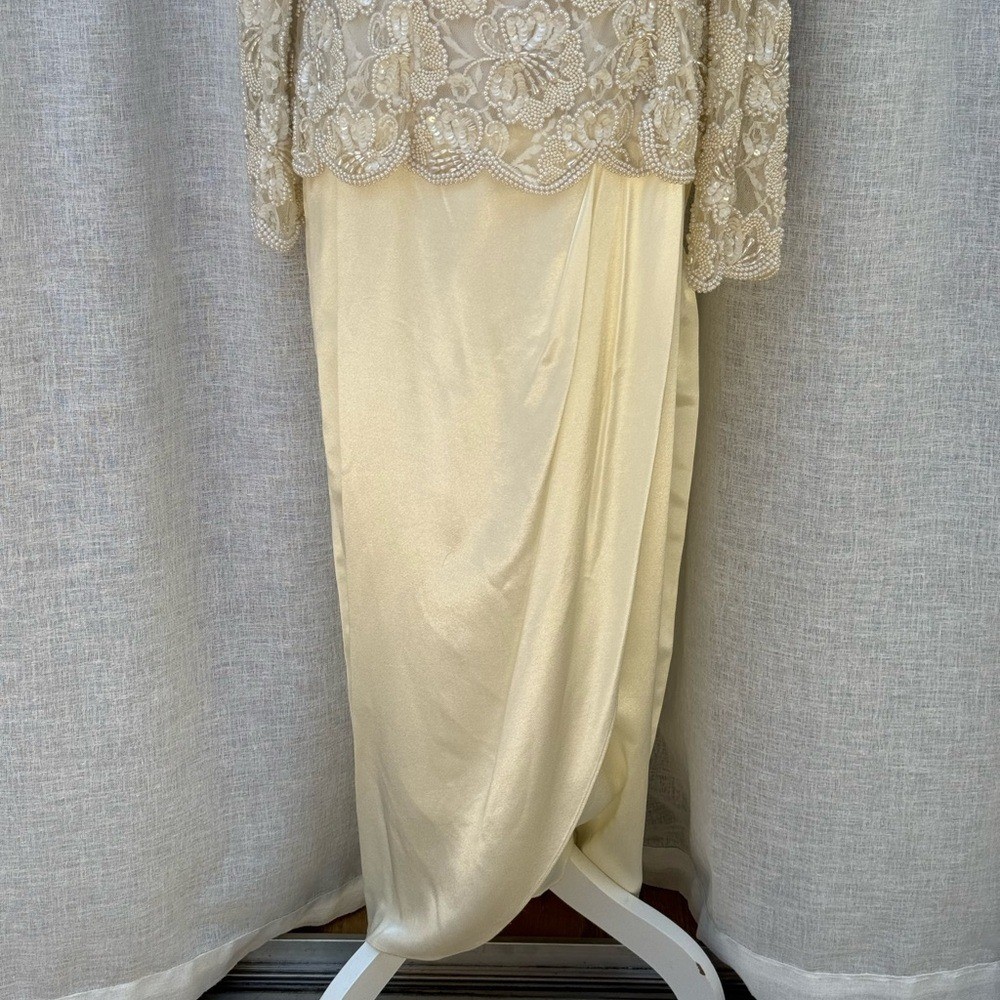 как выглядит NWT St nay off white floral lace pearls sequins gown mother of the bride dress фото