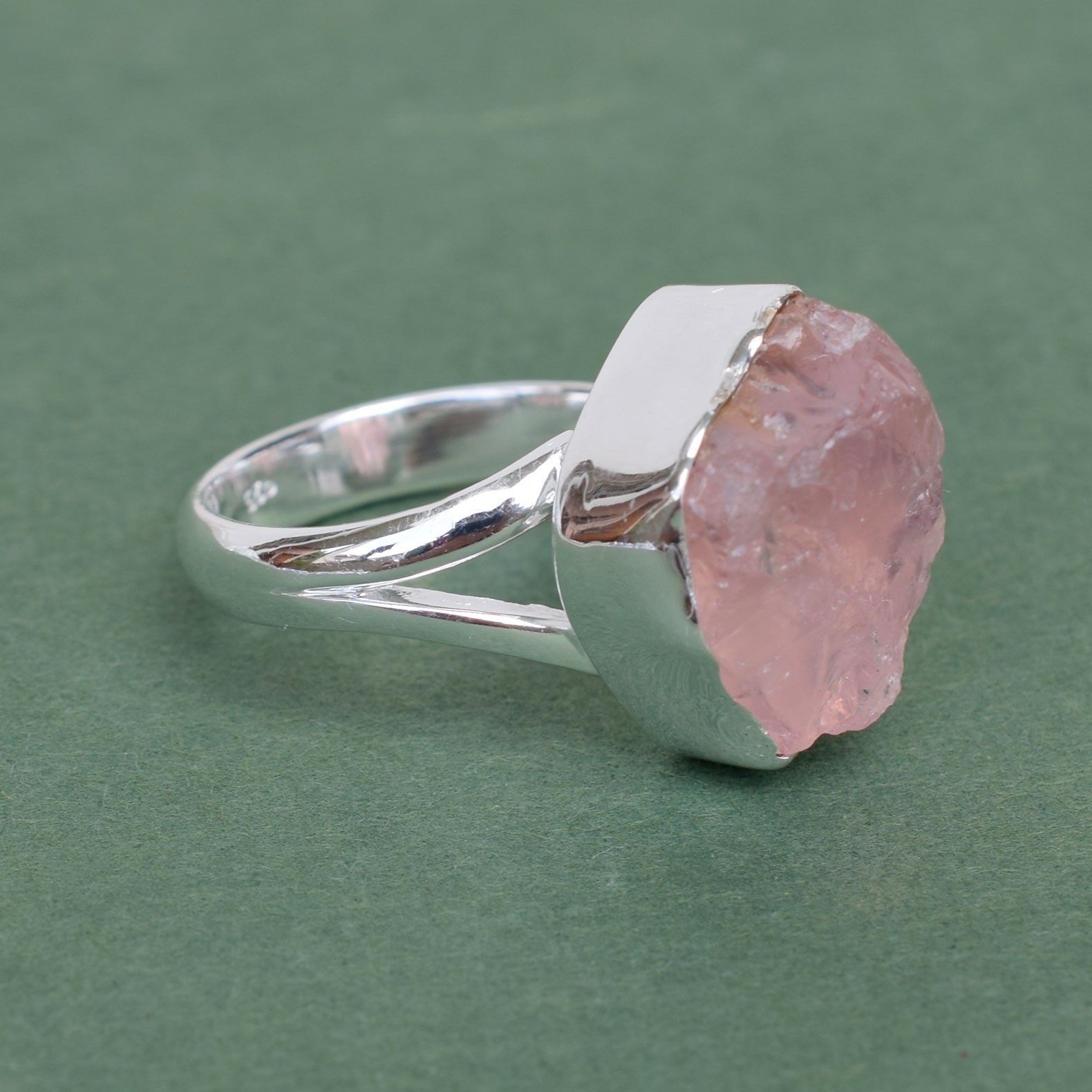 как выглядит Natural Rose quartz Crystal Ring 925 Sterling Silver Pink Healing Crystal-RR387 фото