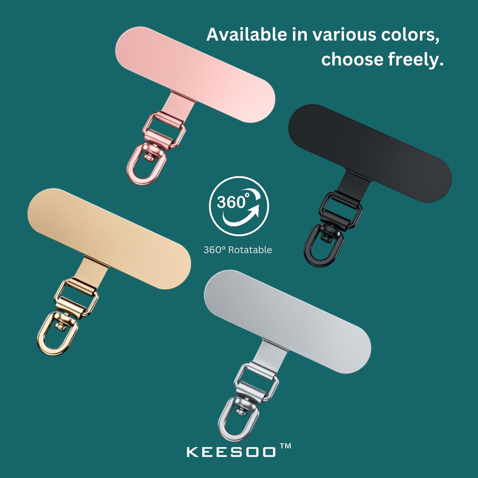 2-Pack 360 Rotatable Phone Tether Tabs with Protective Film Rose Gold