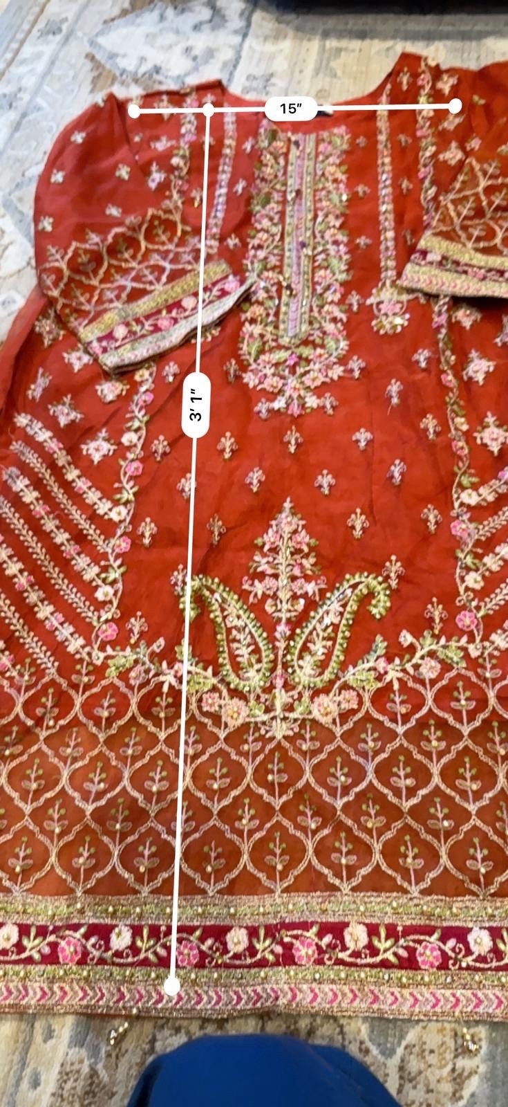 Desi Embroidered Red Kurta with Floral Design Size Large
