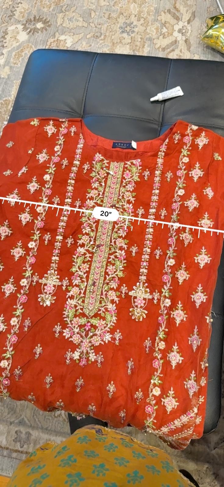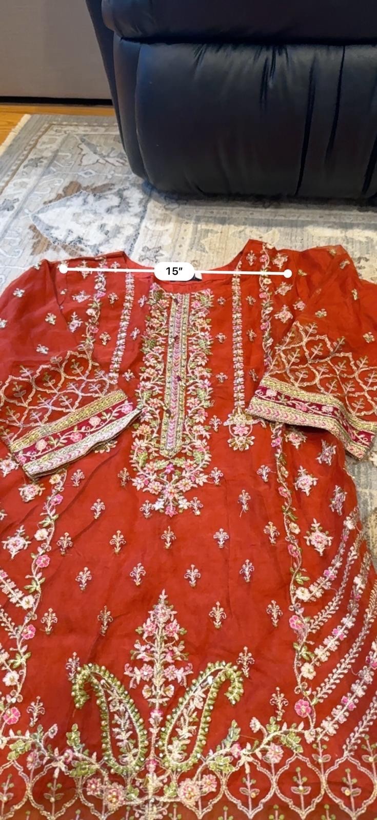 как выглядит Desi Embroidered Red Kurta with Floral Design Size Large фото