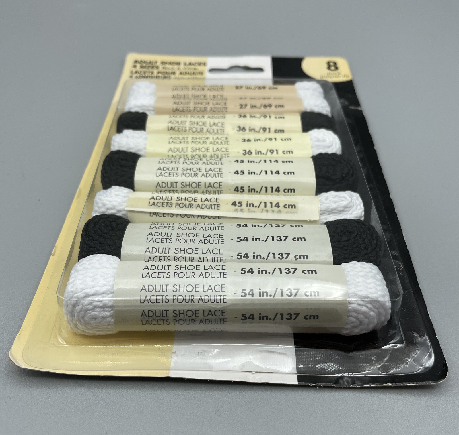 Shoe Laces 8 Pack 4 Sizes 4 Black 4 White Various Lengths New