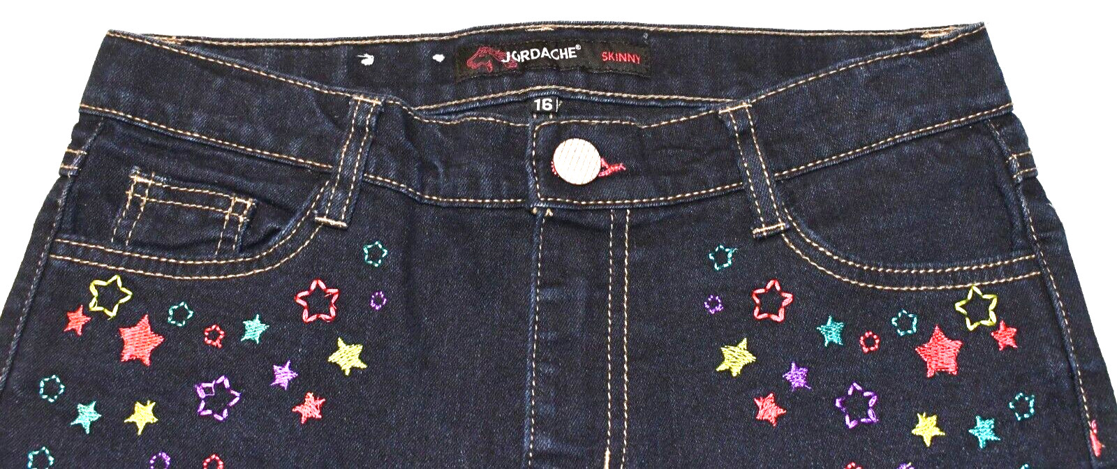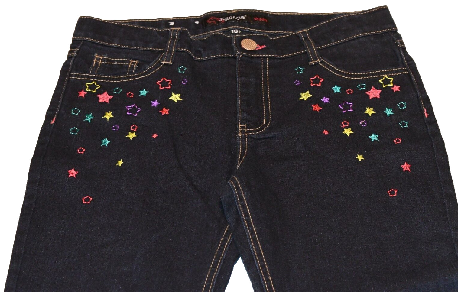 Jordache Denim Blue Jeans Pants w/ Multicolor Embroidered Stars Girls 16 Skinny