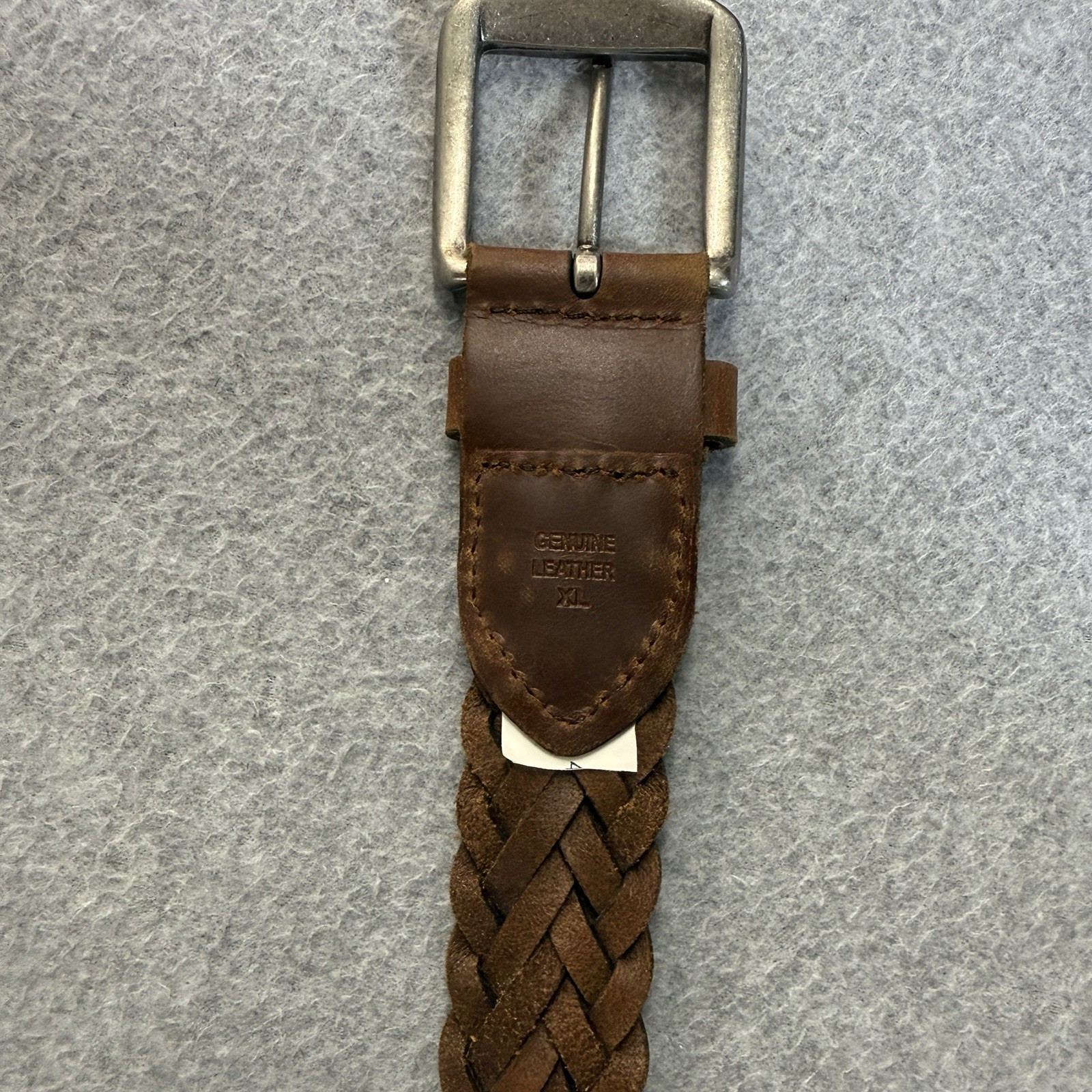 Mens 51 Long Dark Brown Leather Belt Braided Woven Unbranded Silver Buckle