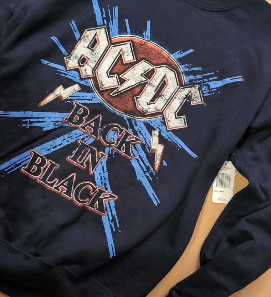 как выглядит AC/DC BACK IN BLACK Navy Blue Sweatshirt Size Adult Small фото