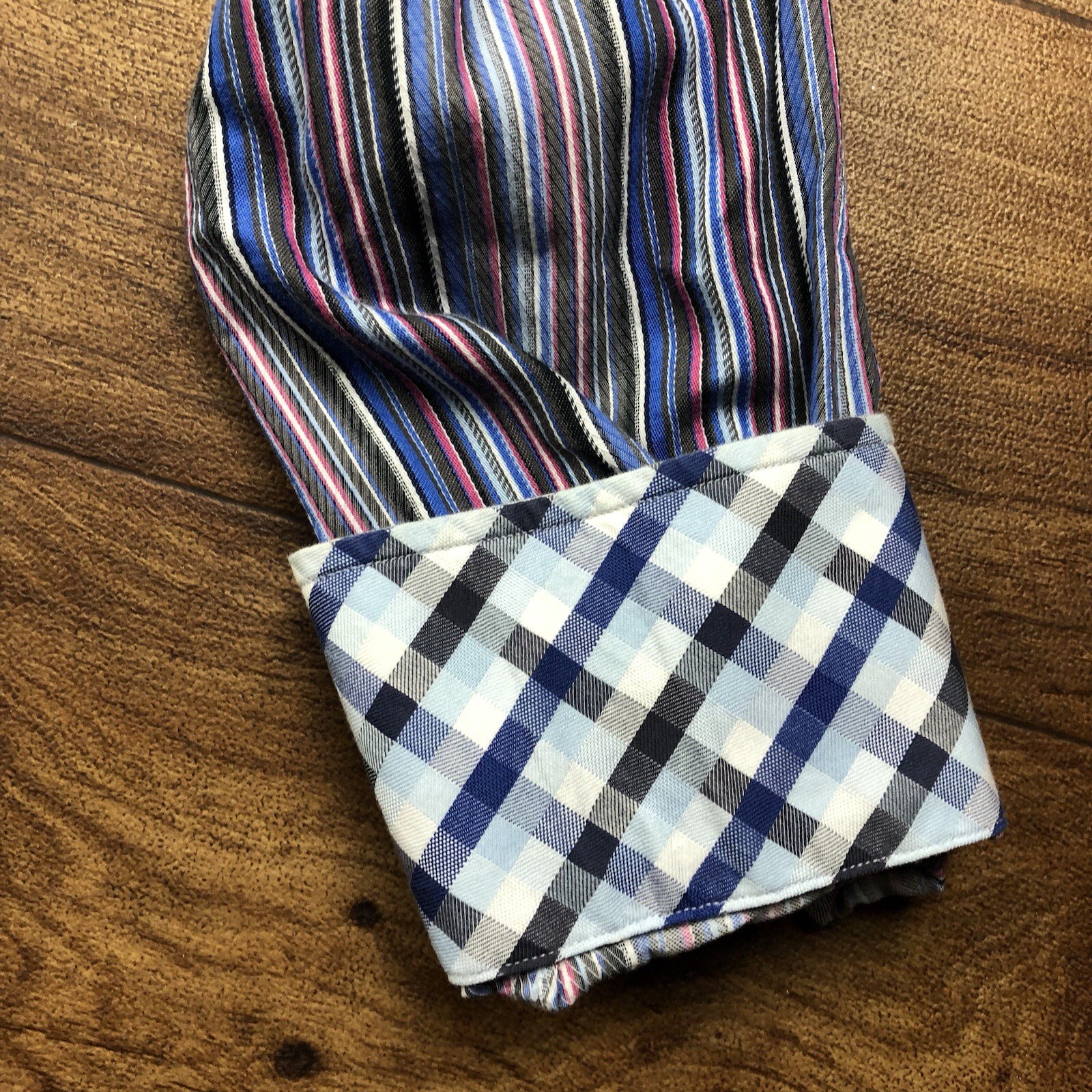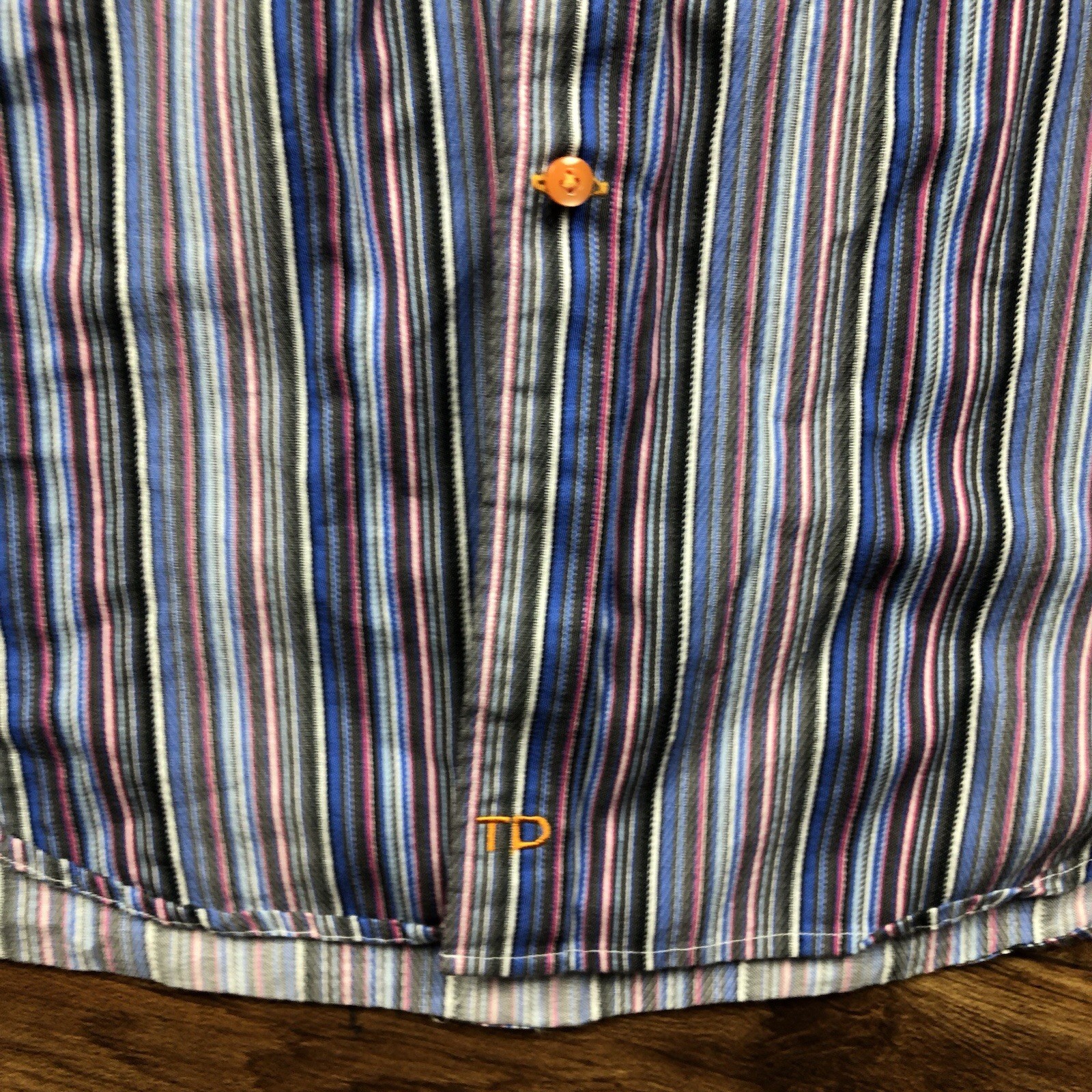 как выглядит Thomas Dean Men Sz L Multicolor Striped Button Up Dress Shirt фото