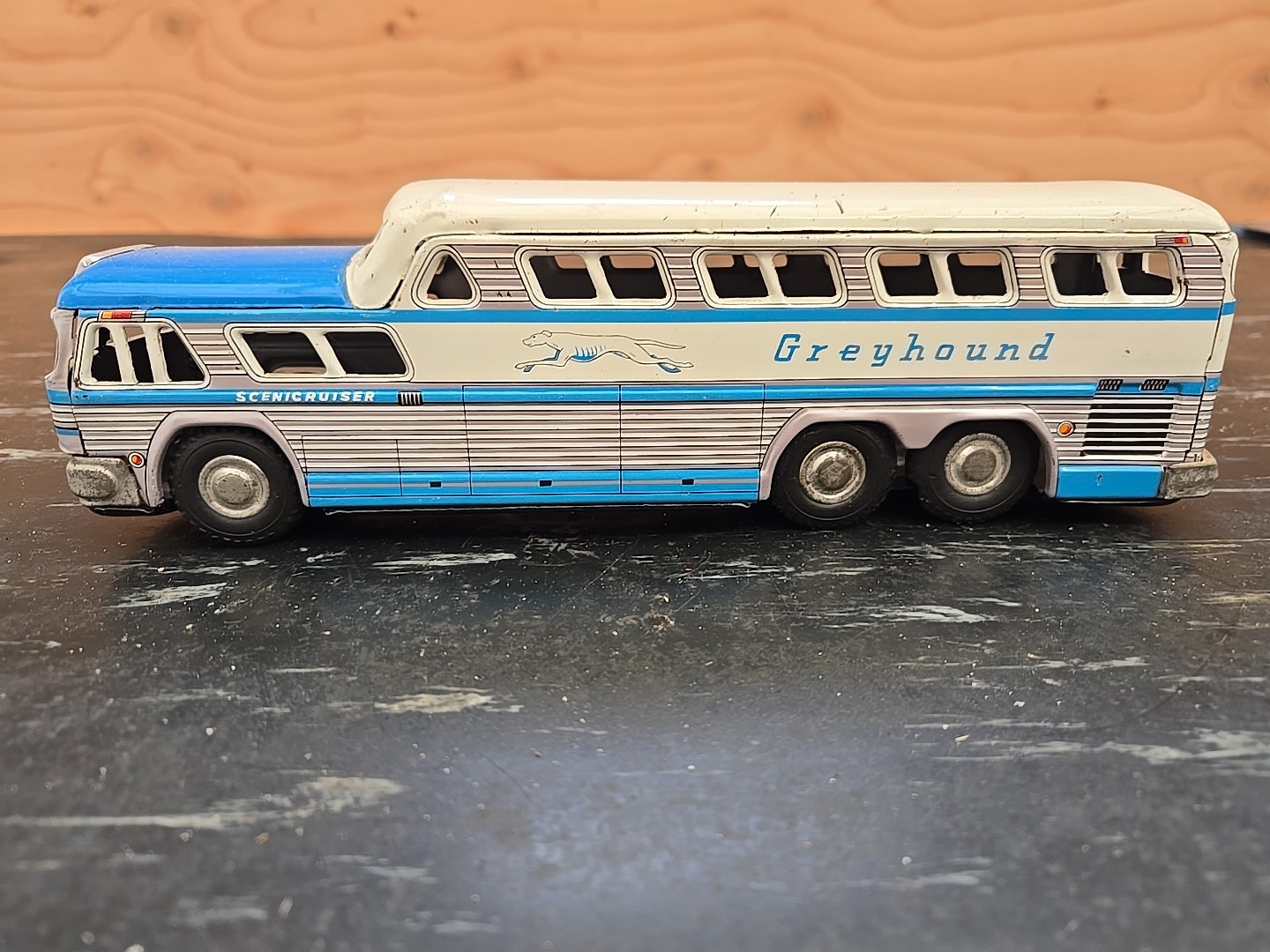 VTG 1960'S TIN LITHOGRAPH GREYHOUND SCENICRUISER FRICTION BUS 11 JAPAN NA-87