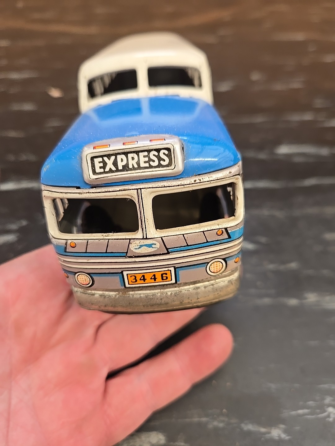 как выглядит VTG 1960S TIN LITHOGRAPH GREYHOUND SCENICRUISER FRICTION BUS 11 JAPAN NA-87 фото