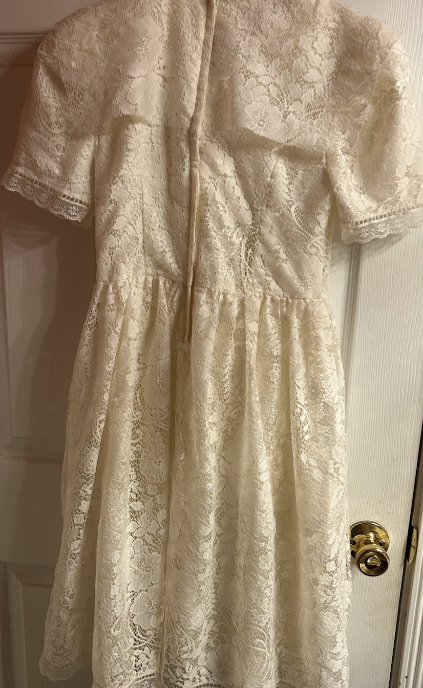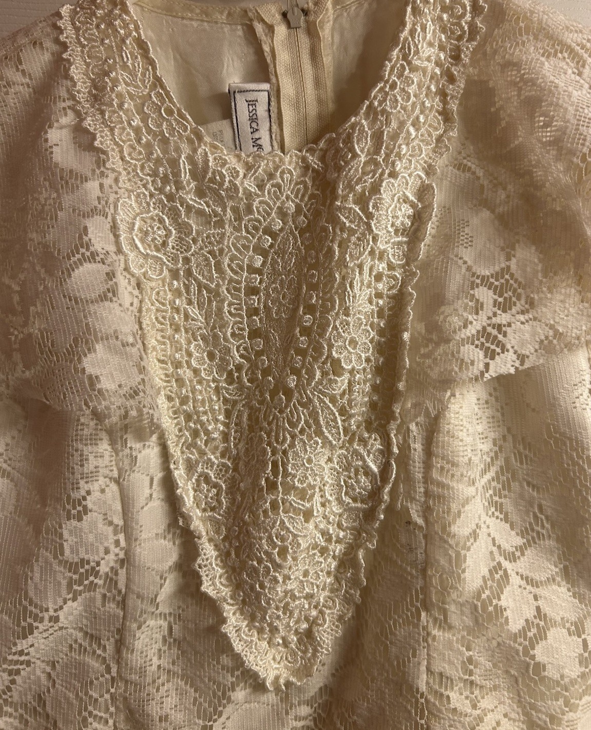 как выглядит VTG Jessica McClintock Bridal Flower Girl Dress Lace Ivory White 10 Embroidery фото