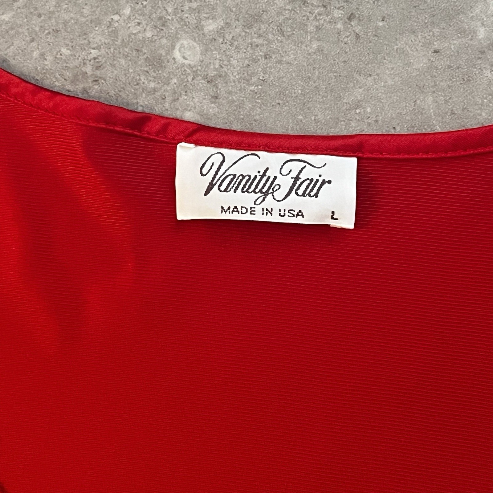 VTG VANITY FAIR Red NYLON V-NECK Lounge PAJAMAS TOP/PANTS Set Sz Large