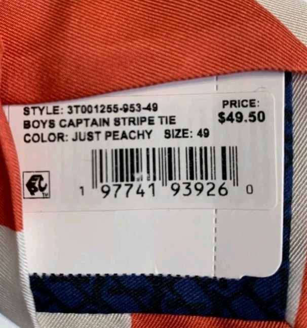 как выглядит Vineyard Vines Boys Captain Stripe Tie Peach White Size 49 фото