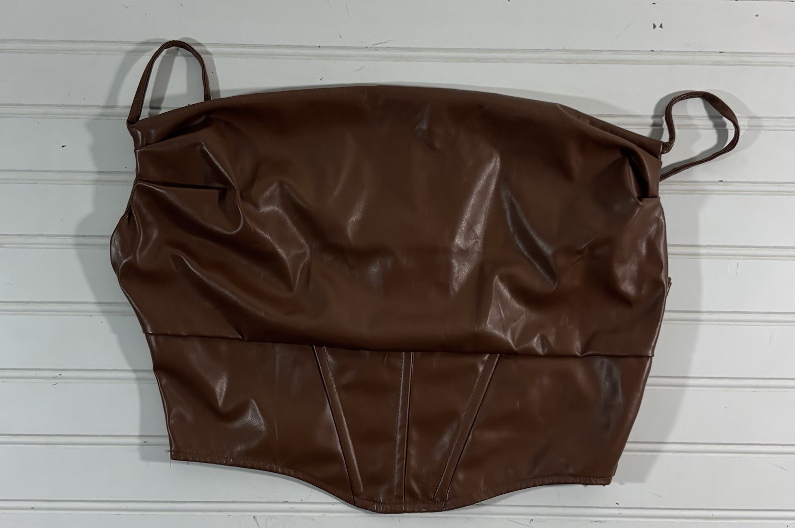 как выглядит Pretty Little Thing Polyurethane Brown Corset Top Faux Leather Womens Size 6 фото