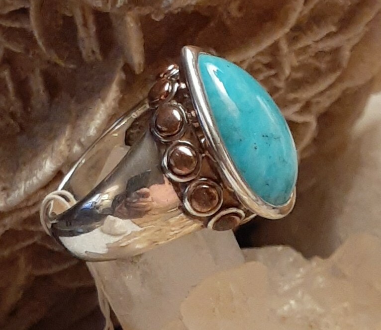 Southwestern Style Sterling Silver Turquoise Copper Accents Ring Size 7