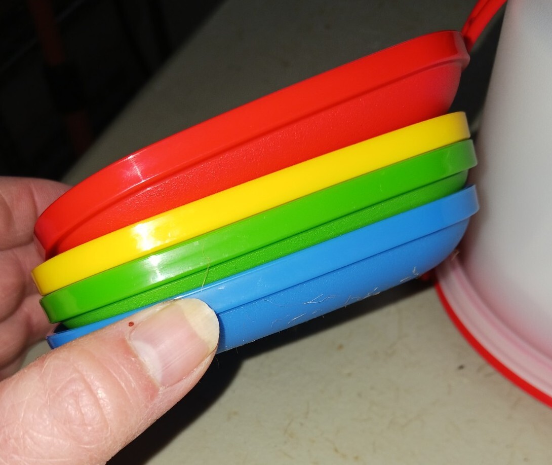 Tupperware, child size, cake saver, plates, server, cups, picture, used