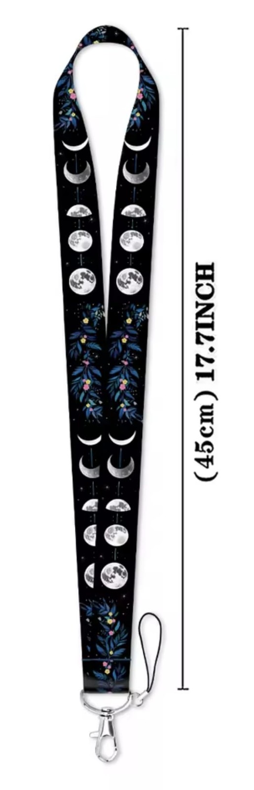 Triple Moon Phases Full Half Moon Eclipse Night Sky Stars Bloom Pagan Lanyard