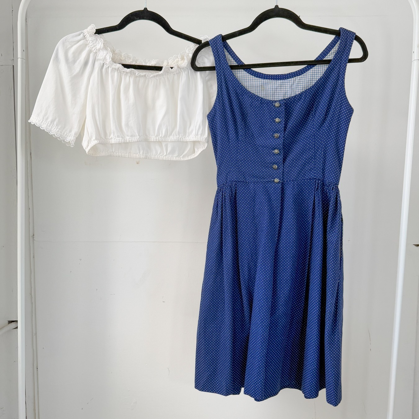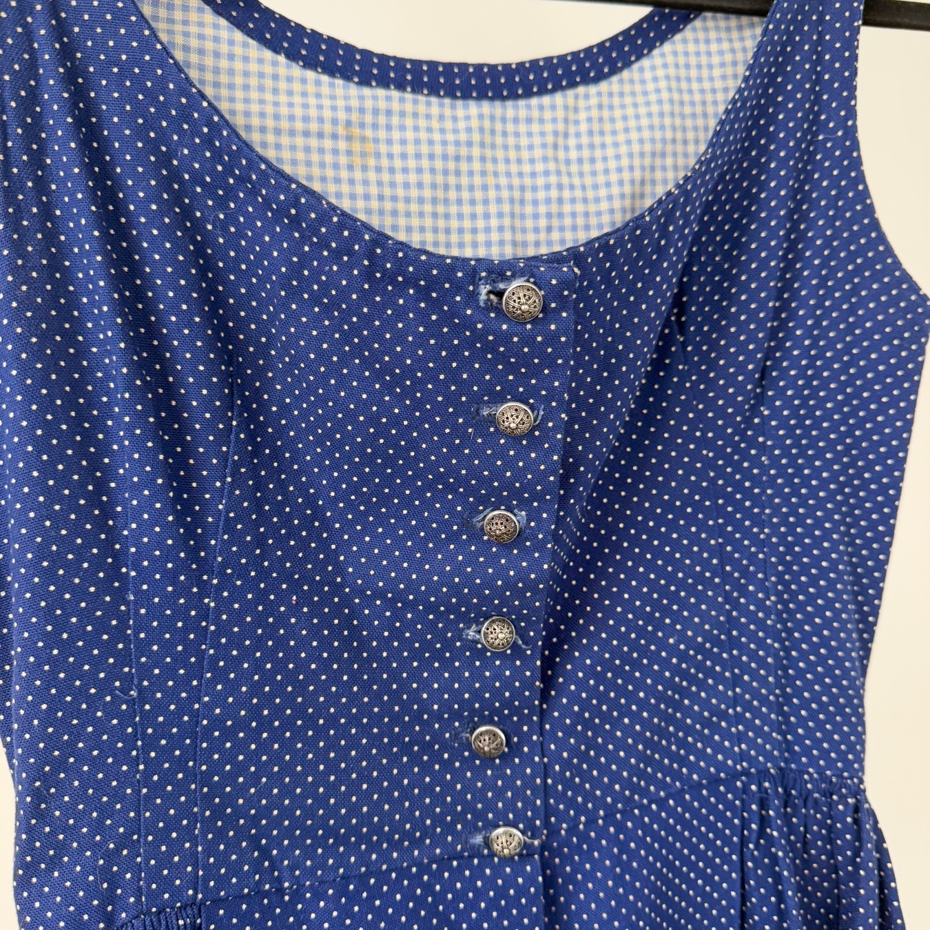VTG German Bavarian Traditional Oktoberfest Blue Dot Dirndl Dress Top Set XS