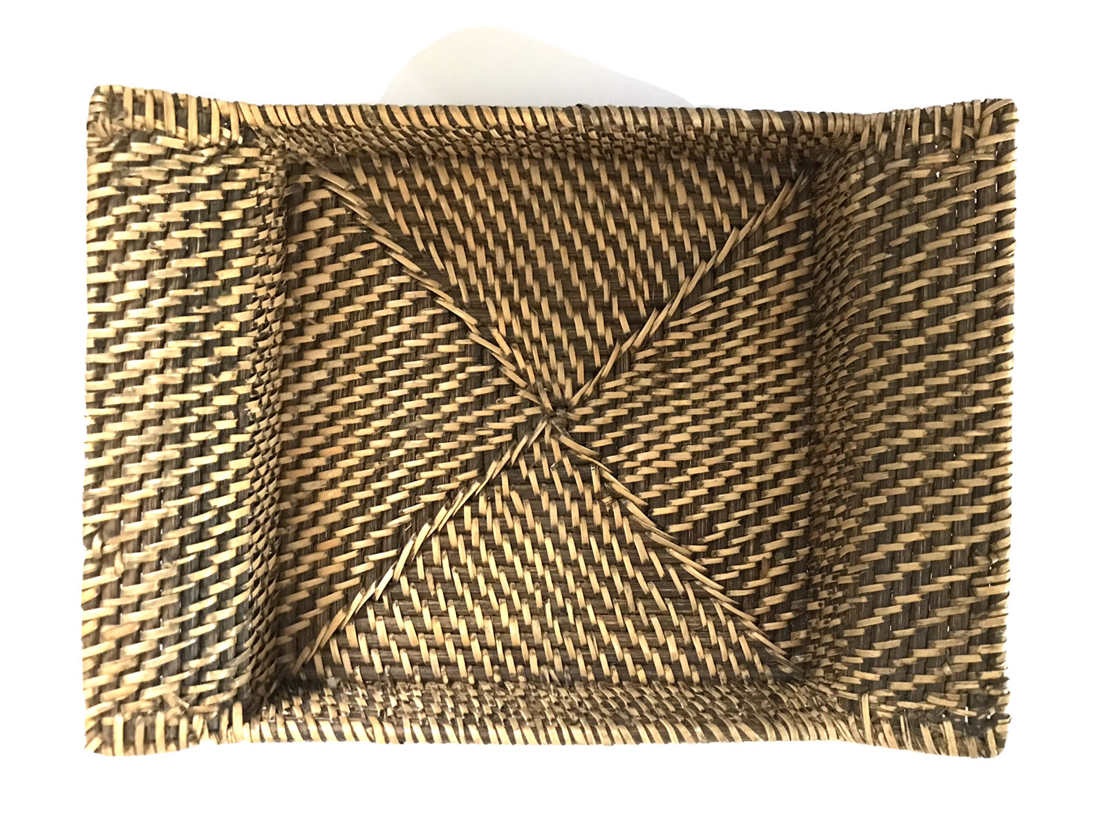 как выглядит Vtg Woven Wood Wicker Tray Rectangular Retro Country Rustic Boho 13 x 9 x 2" фото