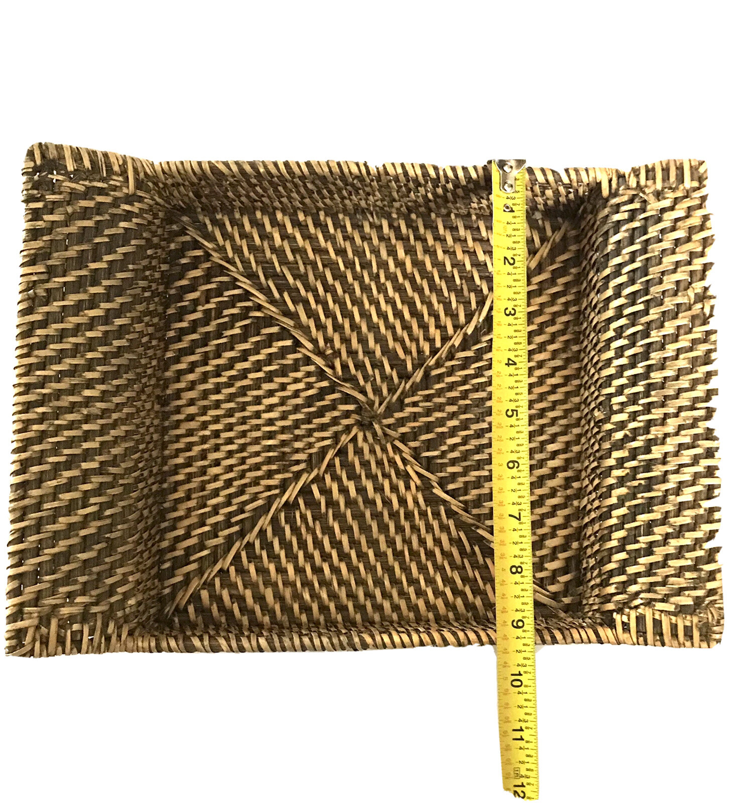 Vtg Woven Wood Wicker Tray Rectangular Retro Country Rustic Boho 13 x 9 x 2