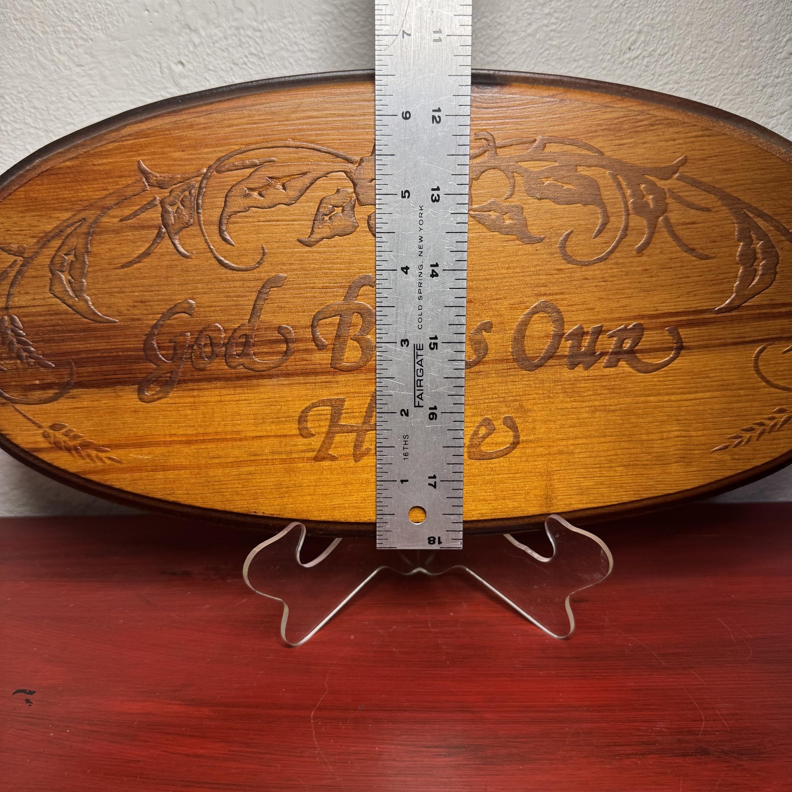 Wooden Wall Plaque Sign God Bless Our Home Engraved Oval Hanging Rustic Decor