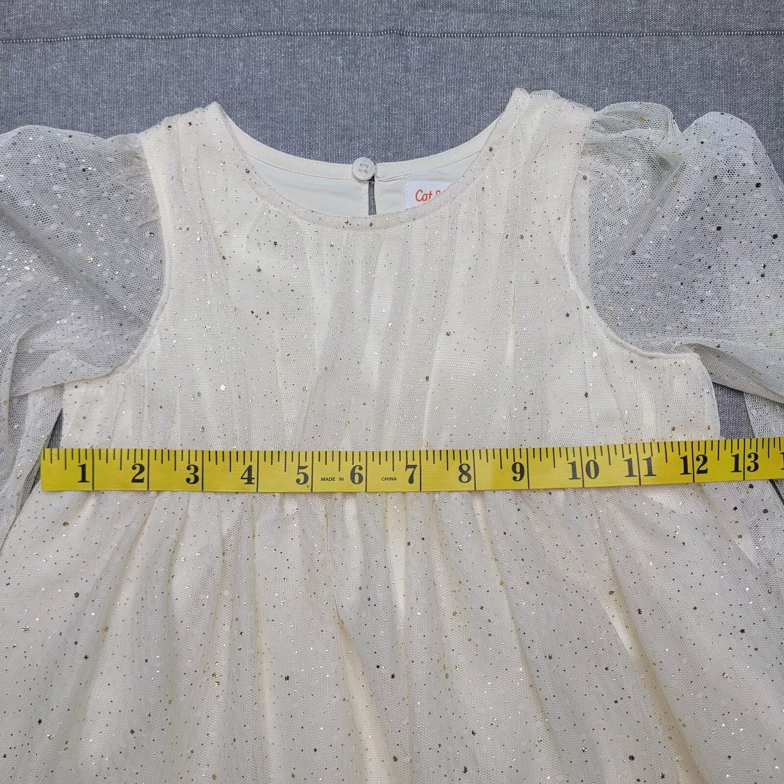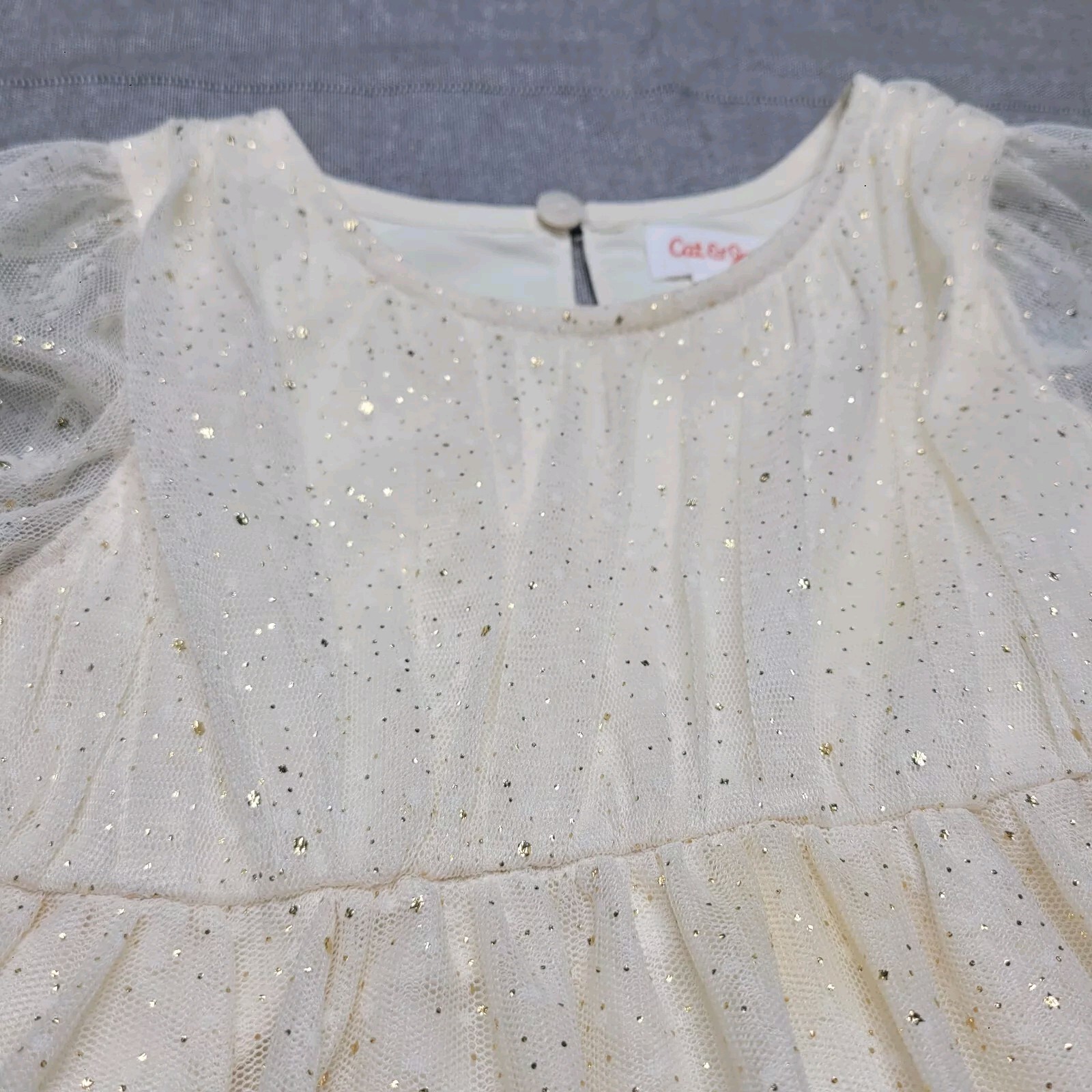 как выглядит Cat Jack 3T Cream Gold Glitter Tulle Dress Sheer Long Sleeve EUC фото