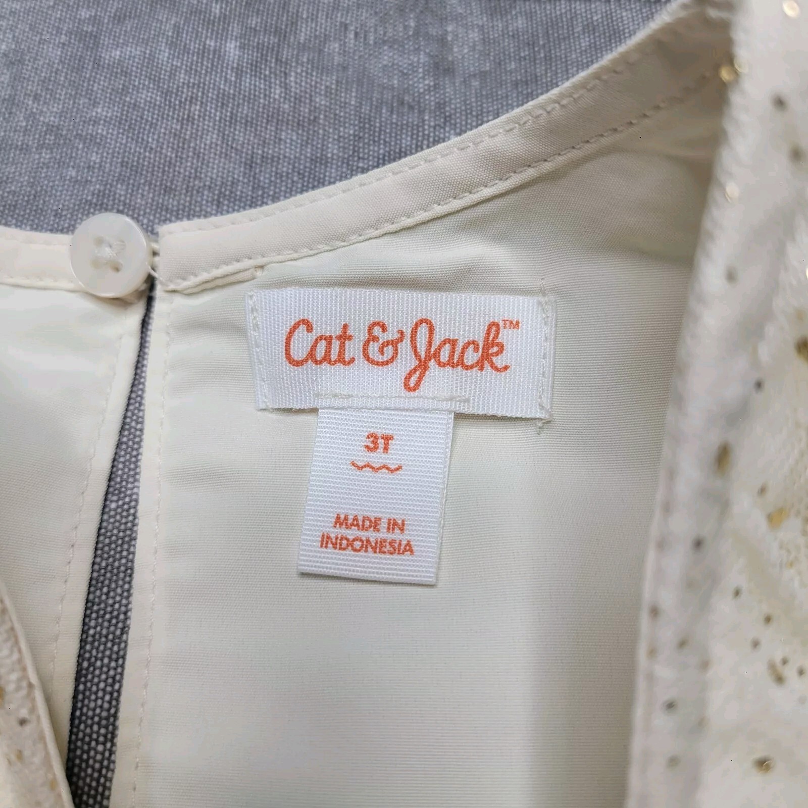 Cat Jack 3T Cream Gold Glitter Tulle Dress Sheer Long Sleeve EUC