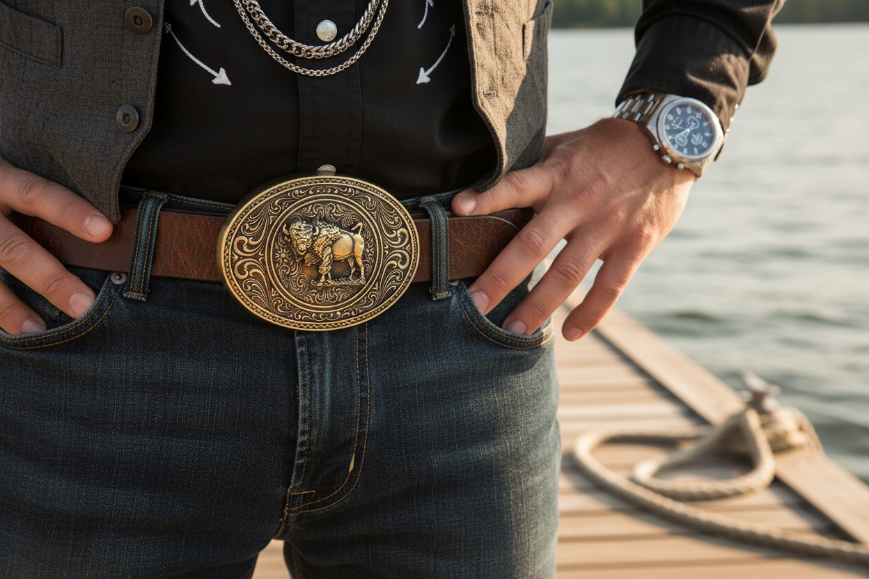 New Men Antique Gold Metal Buffalo Bull OX Buckle Cowboy Western Fashion Rodeo