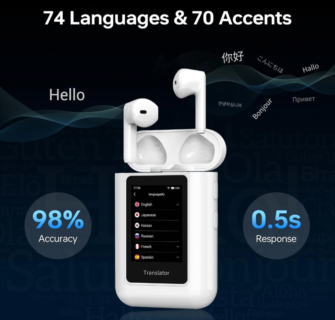 A8 AI Translation Earbuds Real Time, ChatGPT Translator Device in 144 Languag...
