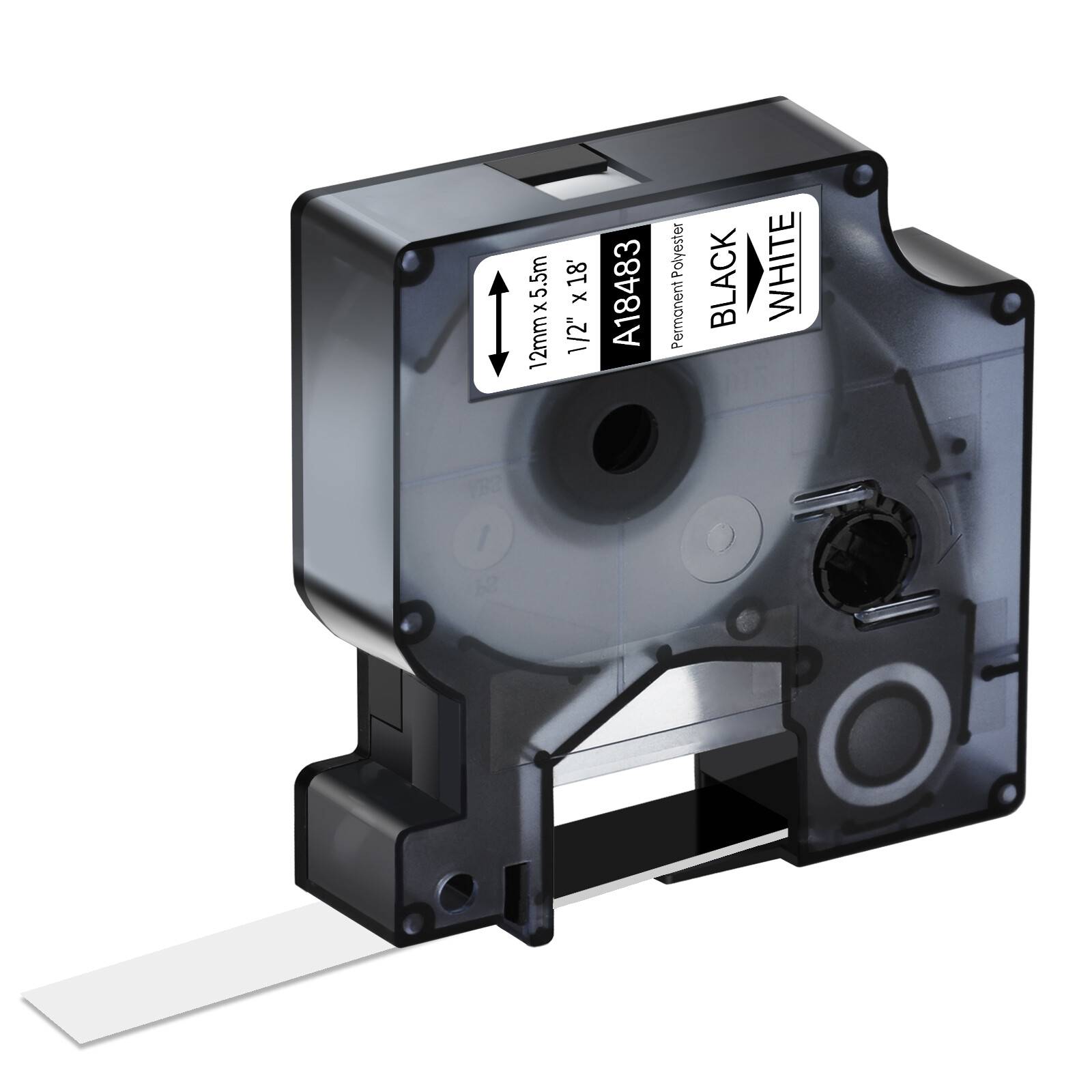 10X Black on White IND Polyester Label Tape 1/2 18483 for Dymo Rhino 3000 4200