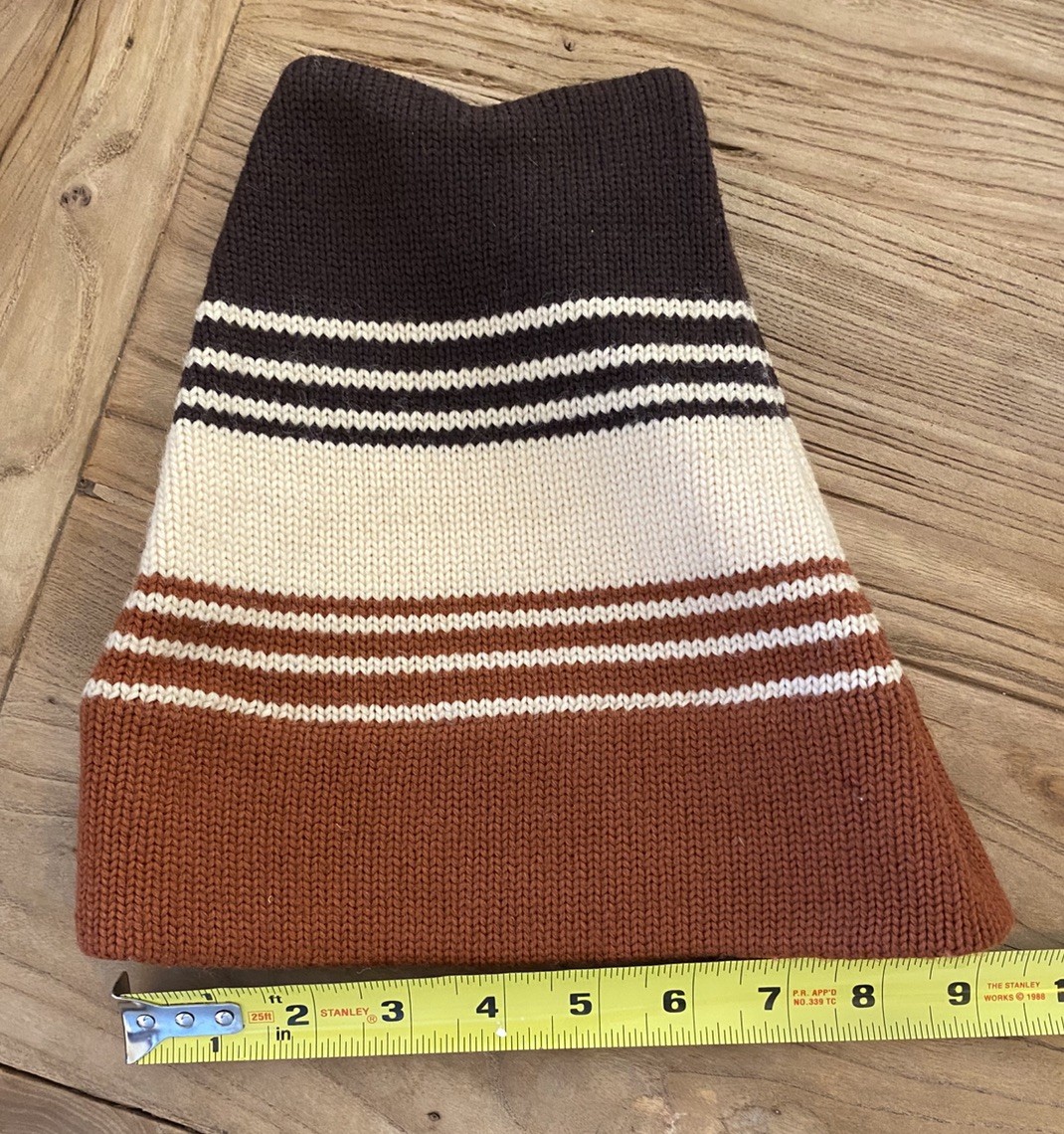 Wigwam 70s VTG Ski Outdoor Beanie Hat Brown Striped Wool Skull Cap Wisconsin