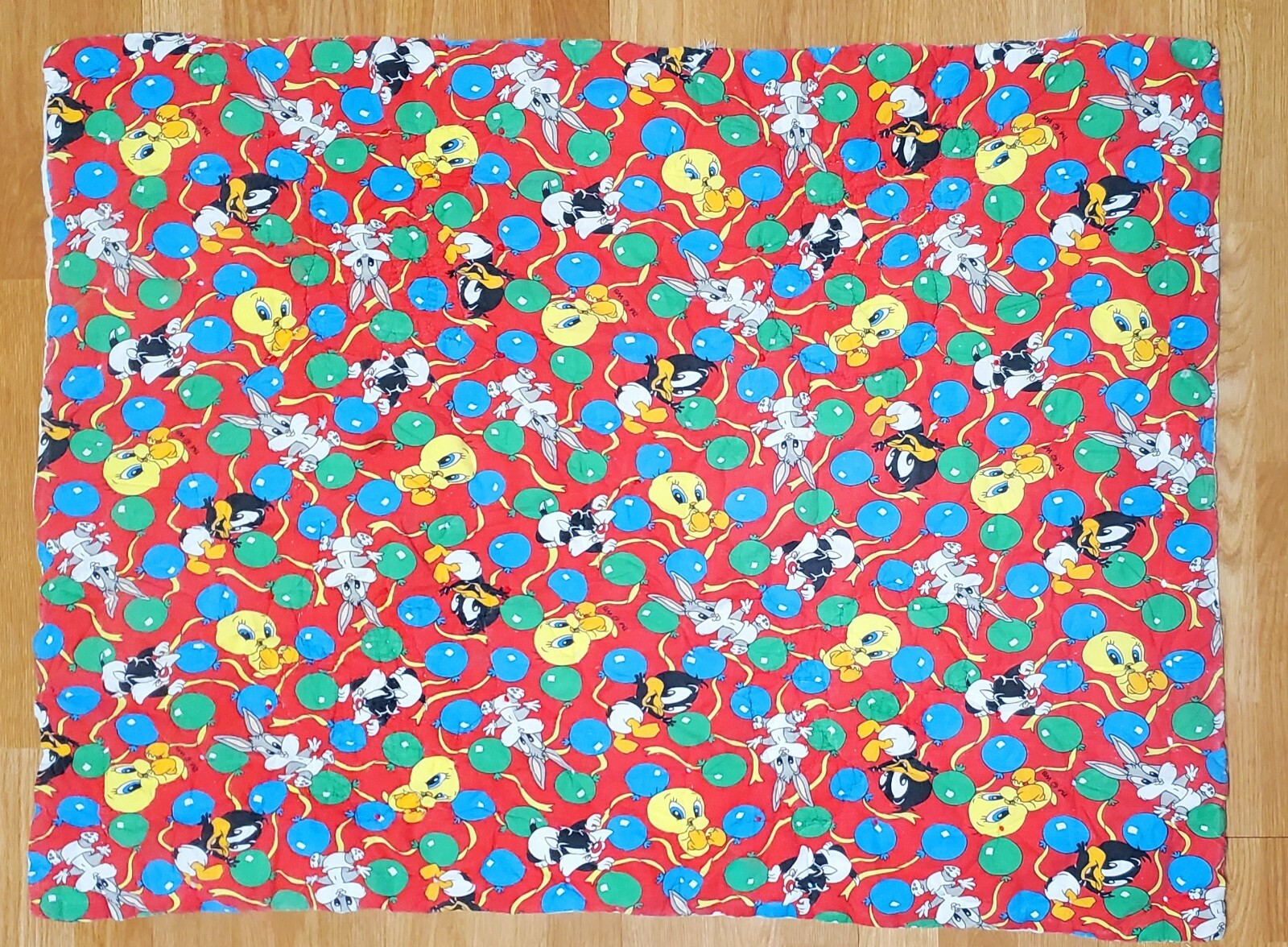Vintage Baby Looney Tunes Crib Comforter Quilt Blanket Taz Tweety Bugs Sylvester