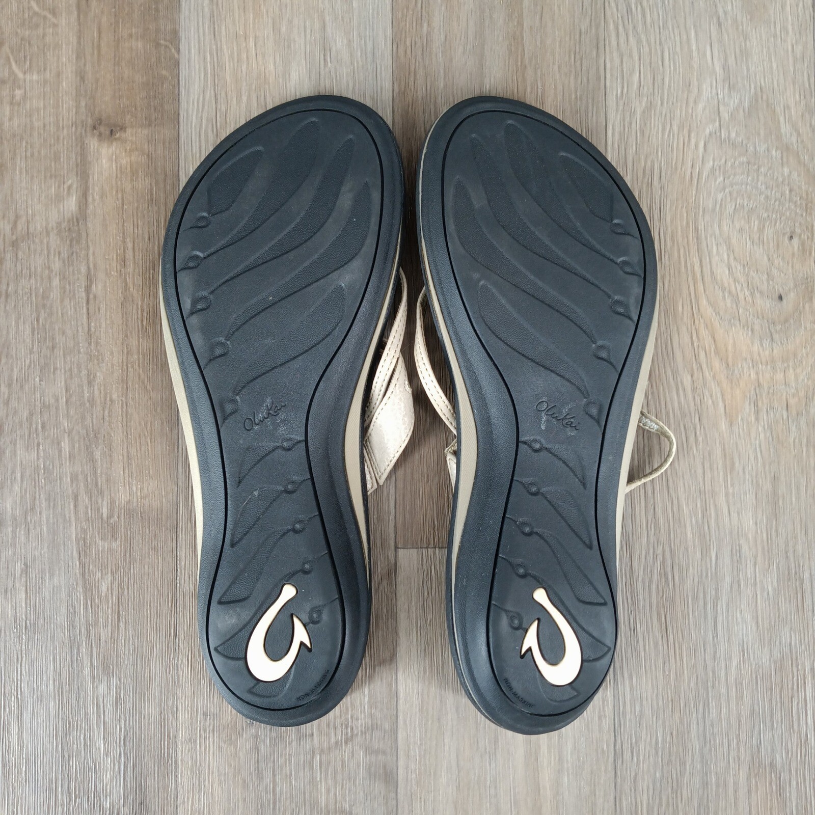 как выглядит OluKai Maa Kai Size 11 Beige Sandals Thong Strap Casual Comfort Walking Shoes фото