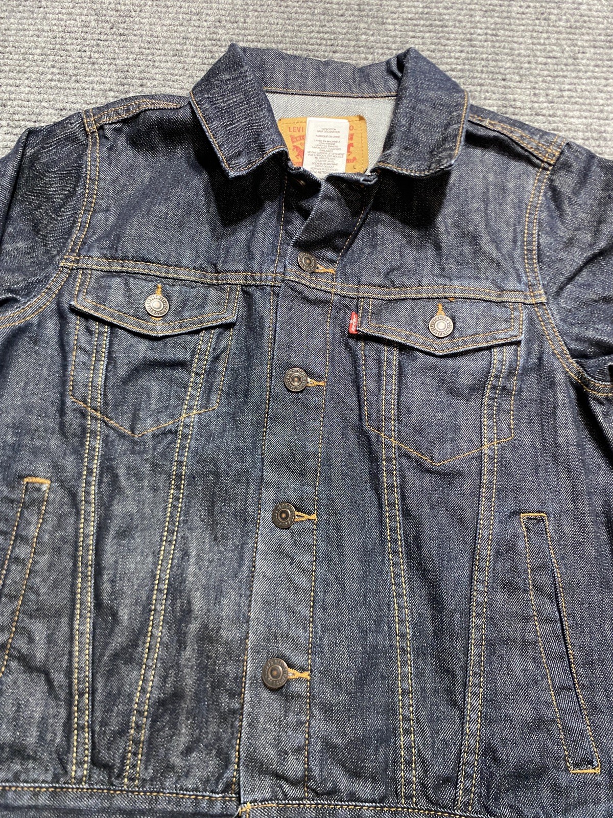 как выглядит Levi s Denim Jacket Youth Teen Large Blue Dark Wash Trucker Jean фото