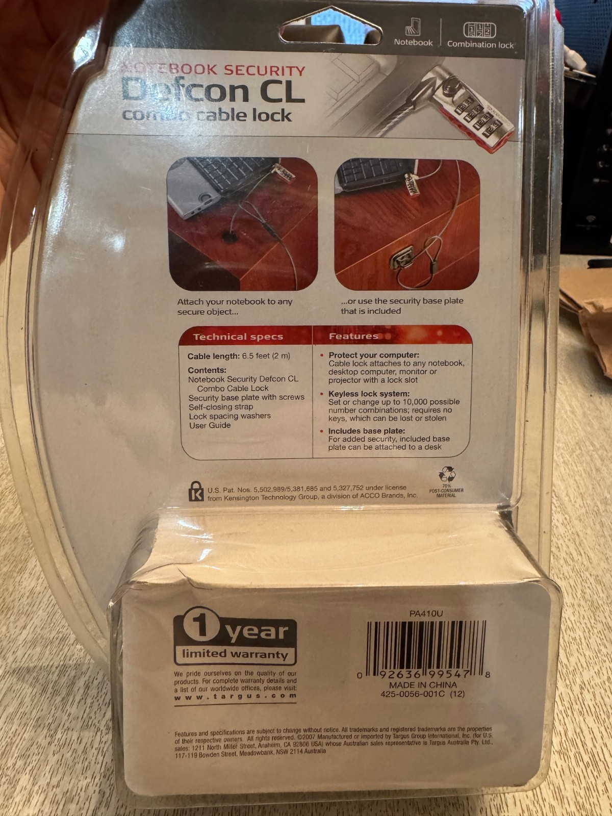 как выглядит NEW Targus PA410U Defcon CL 6.5 Foot Laptop Notebook Combo Cable Lock фото