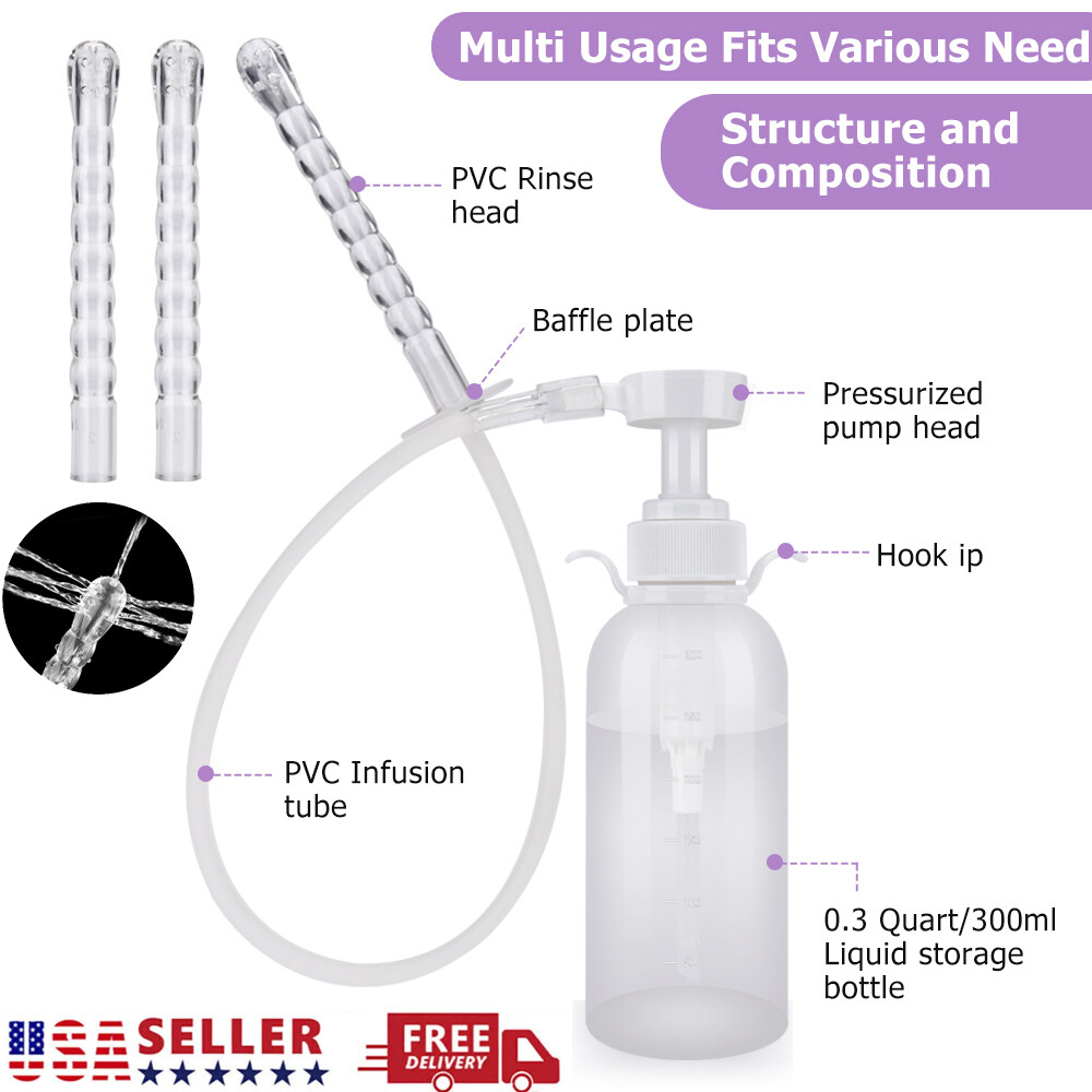 Pump Action Douche Enema Bottle with Nozzle Vaginal Anal Clean Tool Kit 300ml