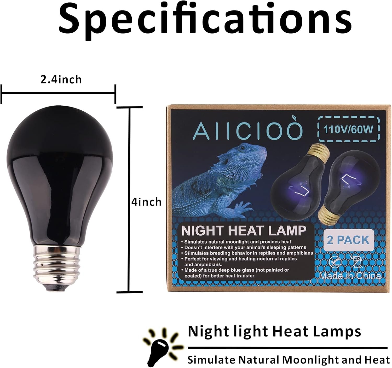 Reptile Heat Lamp - 60 Watt Night Bulb Terrarium 60 W, Black