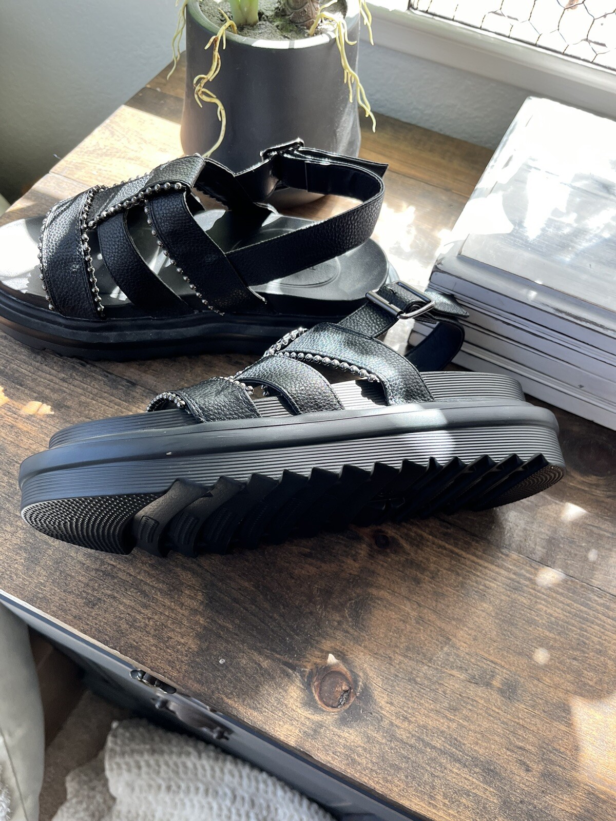 Asos Truffle chunky sole Sandal, studded straps, and buckle closures size 6/7