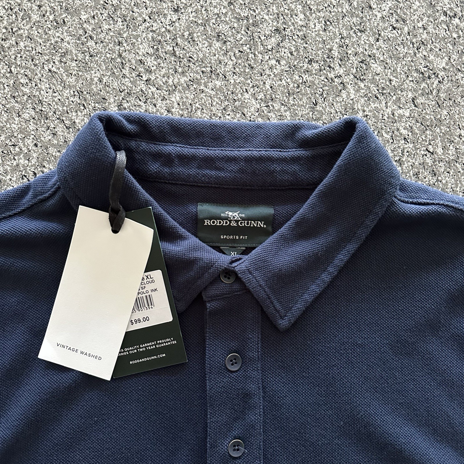 как выглядит Rodd Gunn Polo Mens XL Cirrus Sports Fit Garment Dyed Navy Vintage Wash фото