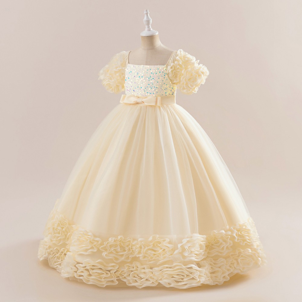 Elegant Sequin Party Girls Dress Bridesmaids Wedding Kids Princess Birthday Prom