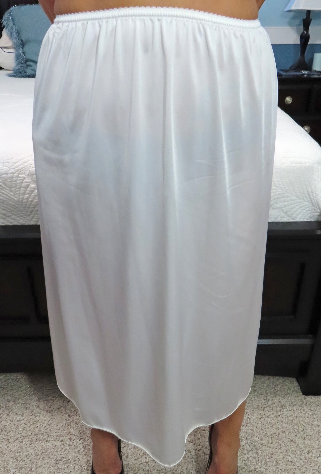 BALI Vintage USA White Silky Nylon Antron III Black Half Slip Lace Trim Sz M