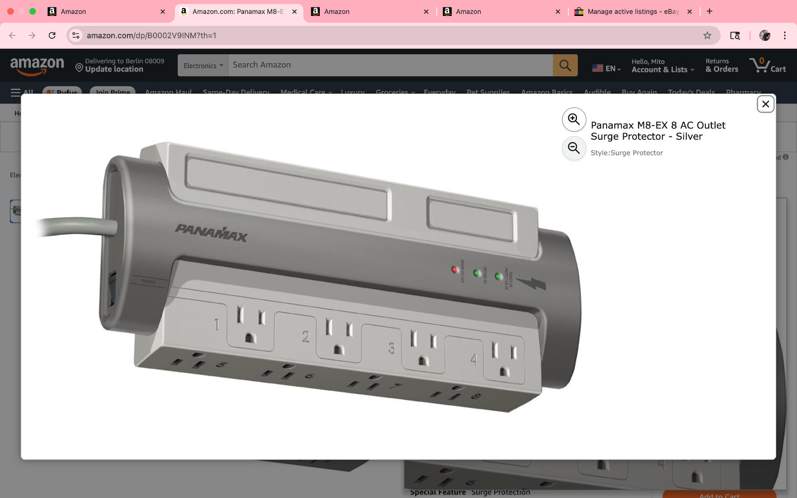 как выглядит Panamax M8-EX 8 AC Outlet Surge Protector - Silver фото