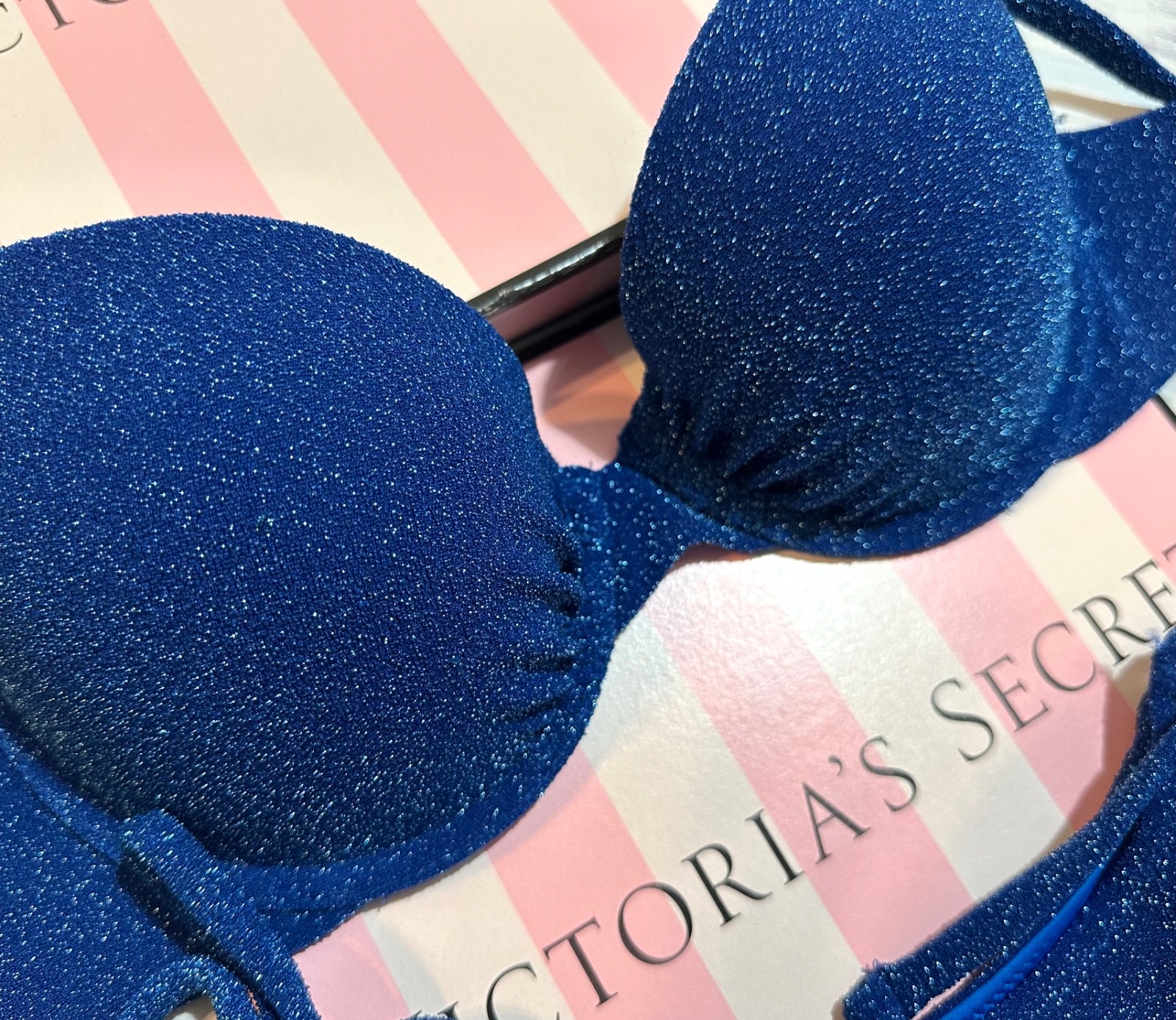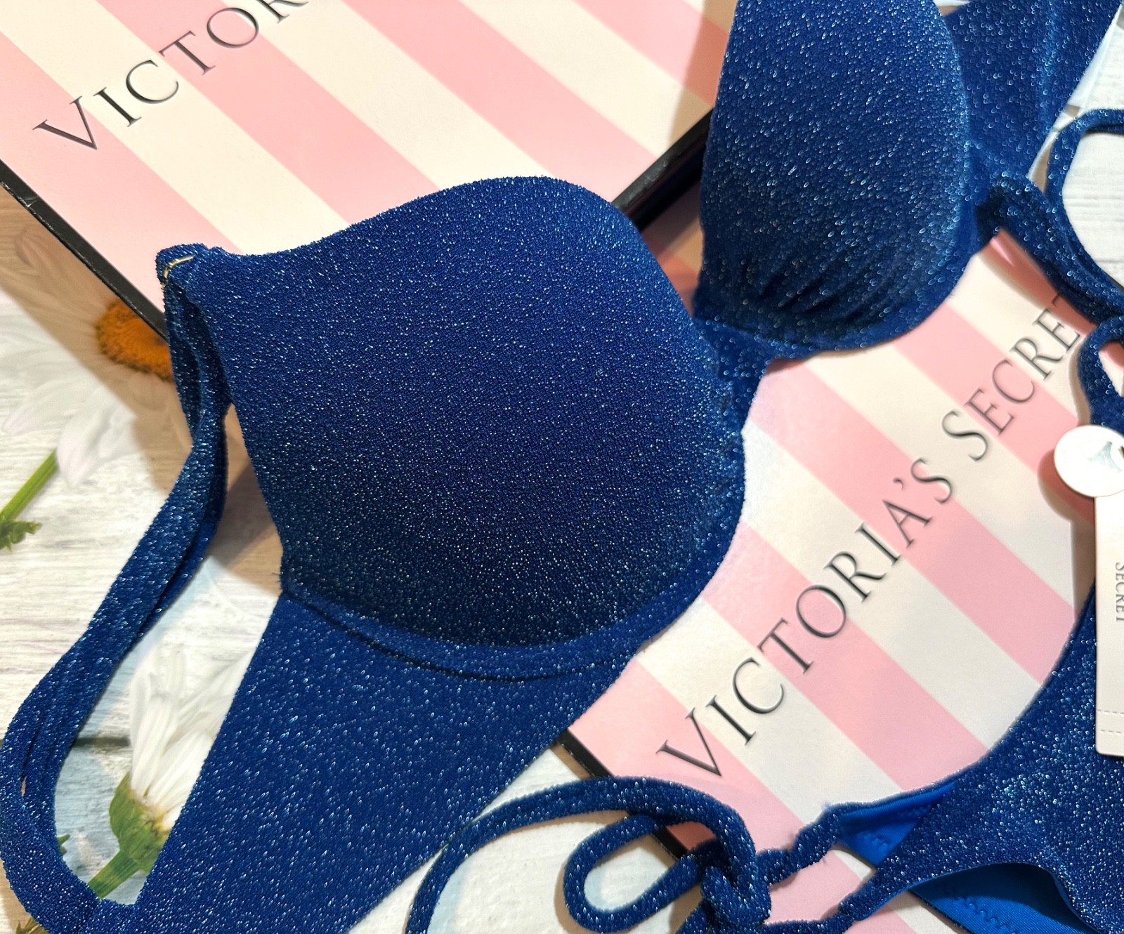 Victoria s Secret Swim Shimmer Icon Push-Up Bikini Side Tie Brazilian Set Blue