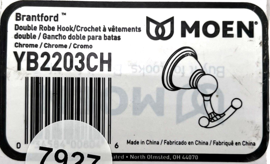 MOEN Brantford Chrome Double Robe Hook Bathroom YB2203CH
