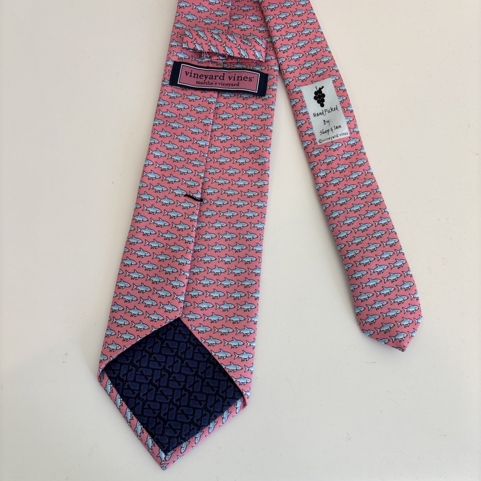 Vineyard Vines Mens Neck Tie Silk Pink/Blue Shark Fish 60x3.5