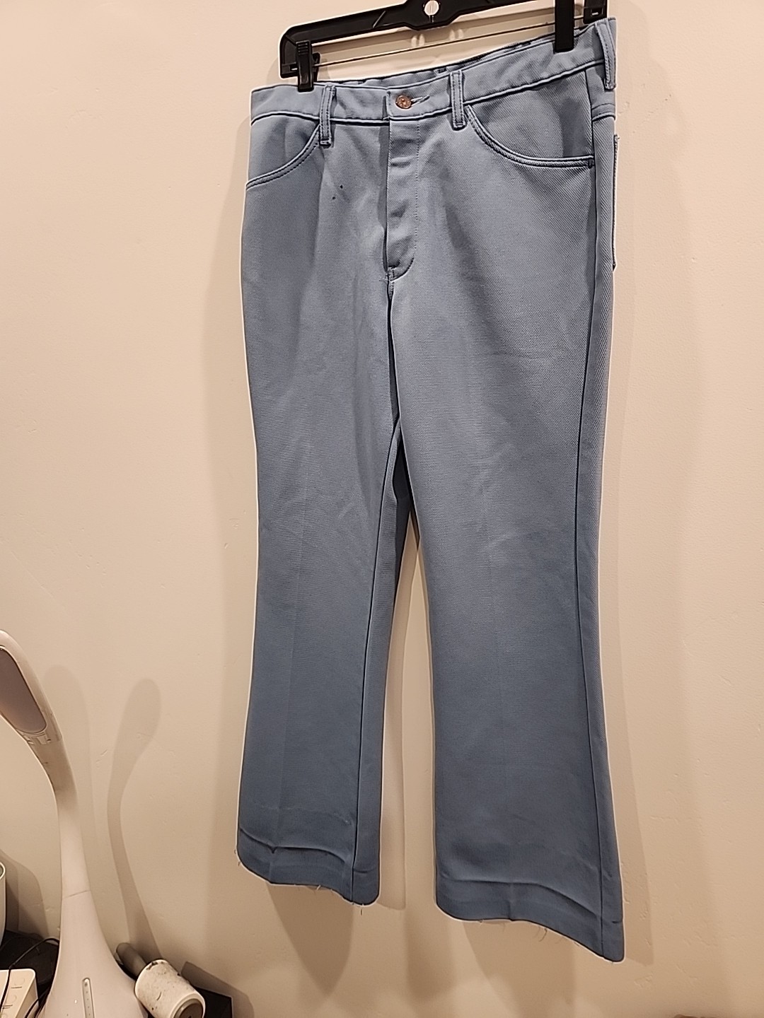 vintage farah lt blue polyester pants 70's lt. blue flare 32 w 30 L bell bottom
