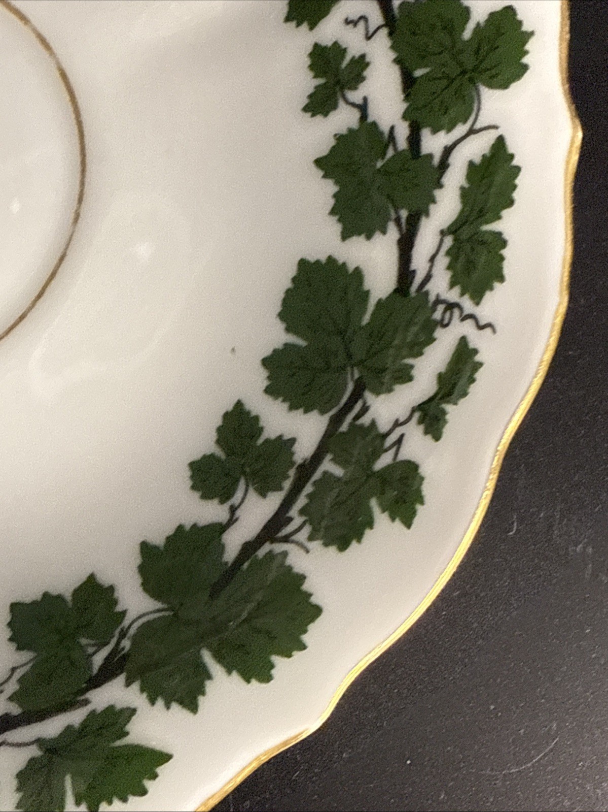 Meissen Green Ivy Full Green Vine Scalloped Gold Trim Footed Teacup Saucer 1/9